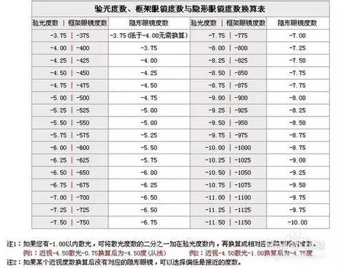 【简易方法】:现在眼镜店多使用一种行之有效的简易的方法来得出隐形眼镜的配镜光度,即参照《配镜光度对照表》来验配。